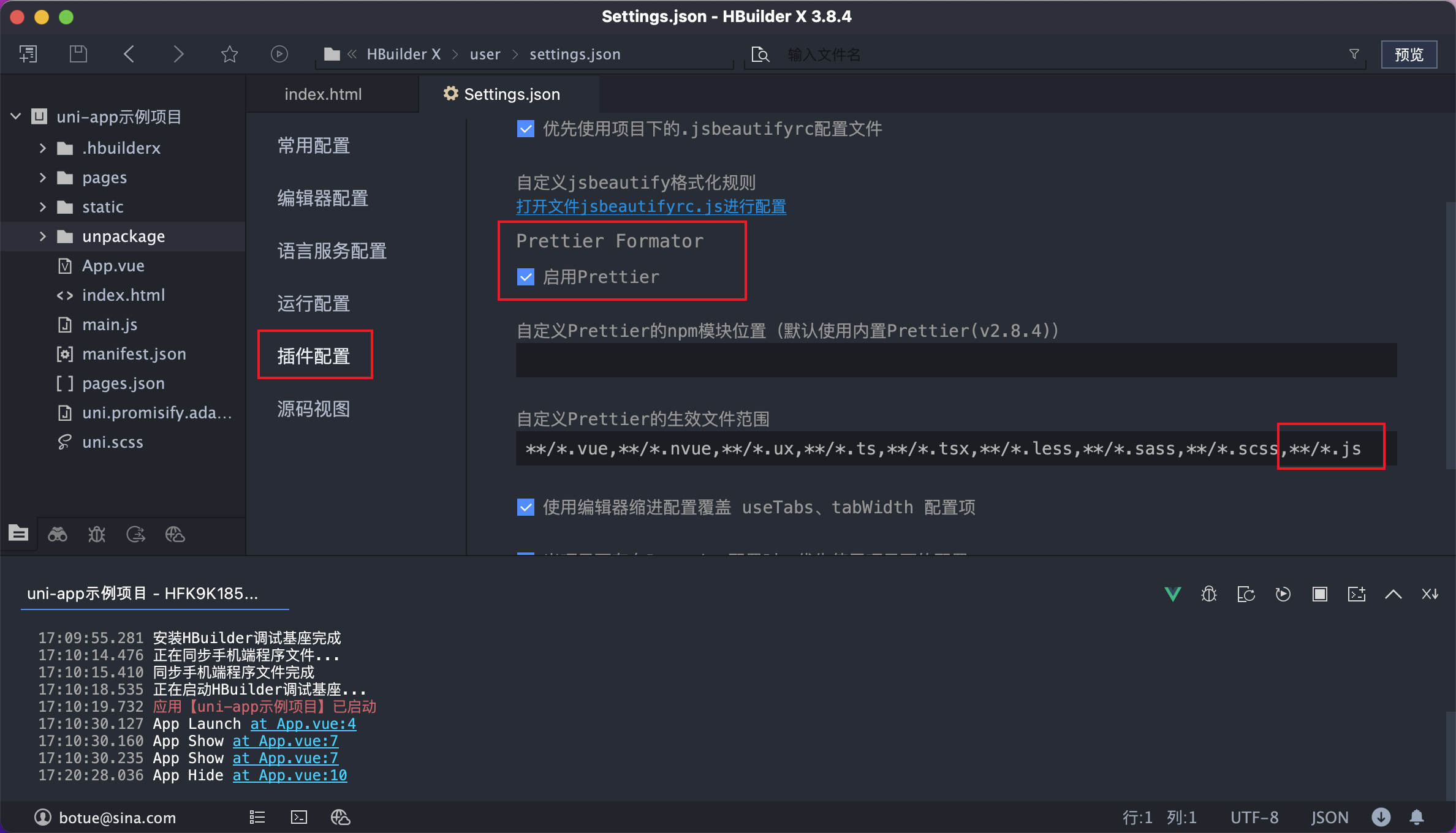 除上插件相关配置外,大家还需要对 HBuilder X 本身的设置做一些调整,主要有以下几个方面: